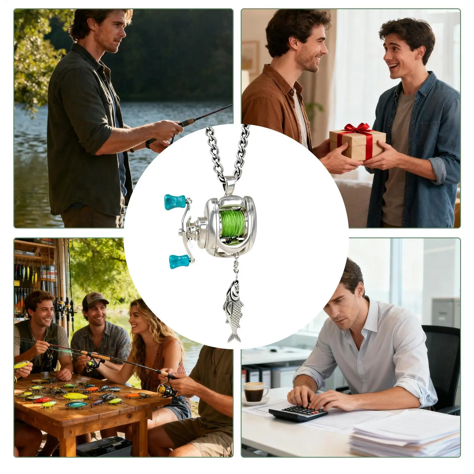 1.Creative Design: With its 3D engraved intricacies and authentic reel design, the fishing necklace acts as a badge of distinction for fishing enthusiasts, fostering a sense of belonging within the fishing lifestyle and serving as a keepsake at meetups or leisure activities
